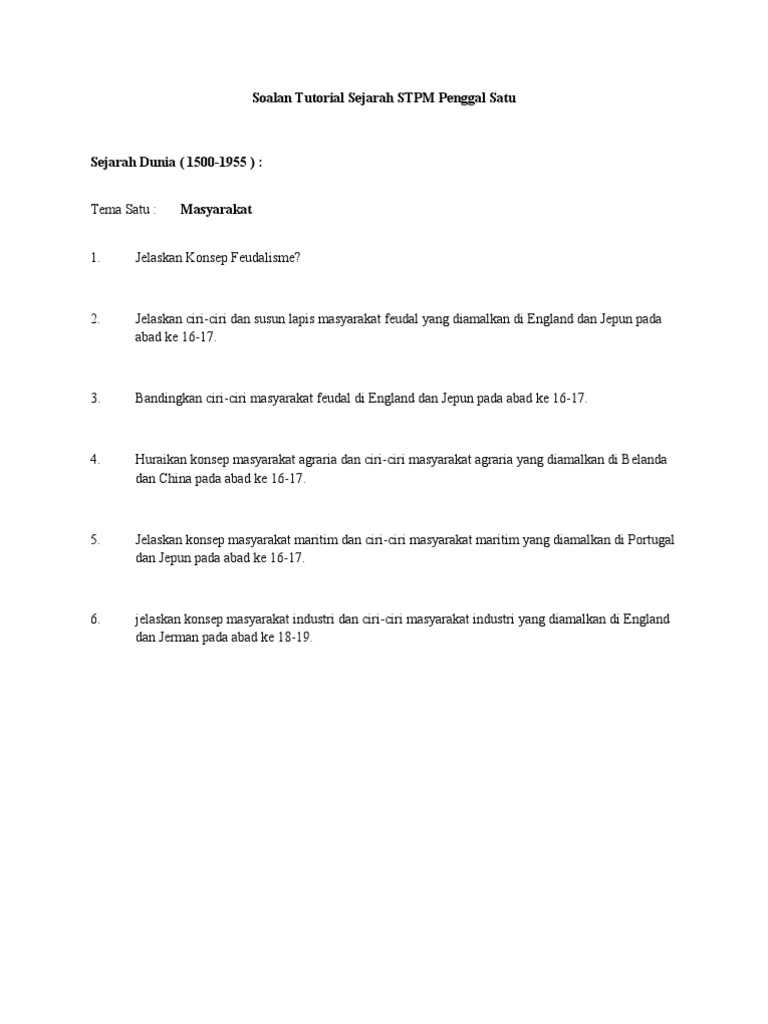 Soalan Tutorial Sejarah Dunia