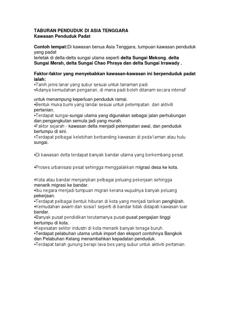 Faktor Faktor Yang Mempengaruhi Taburan Penduduk Di Asia Tenggara Ge
