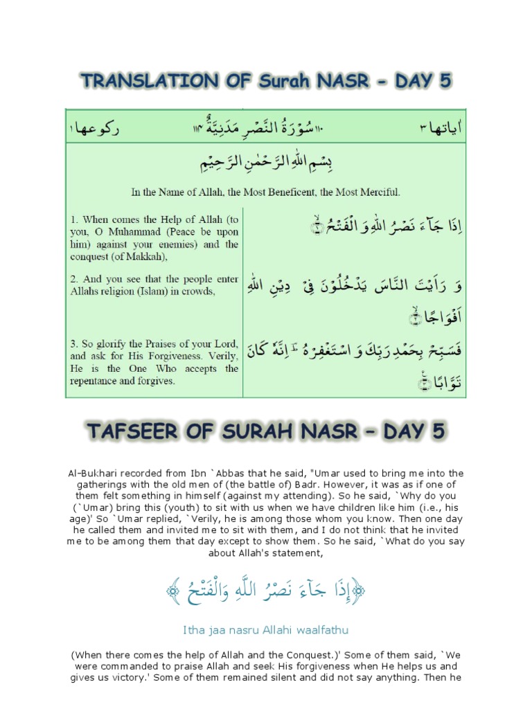 اردو ترجمہ و تفسير النصر ١١٠ سورۃ القرآن Pdf Quran Surah 110