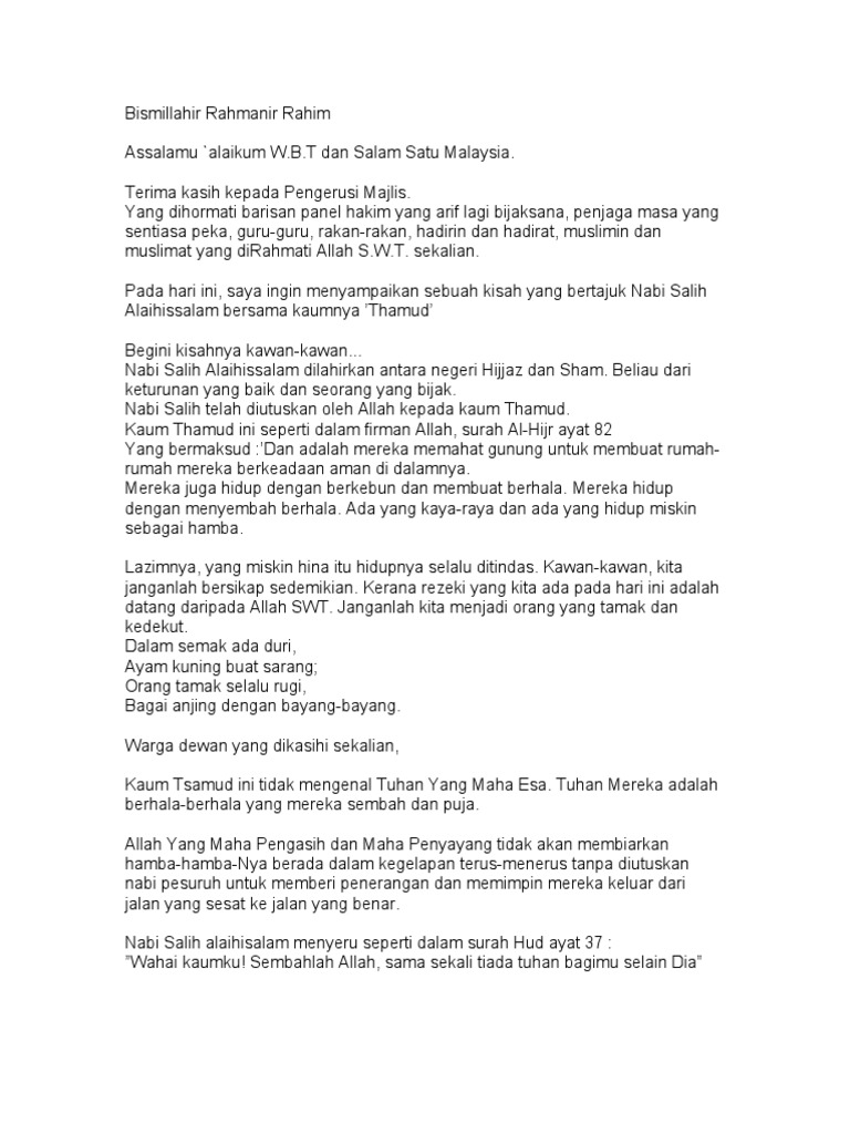 Teks Bercerita Nabi Salih