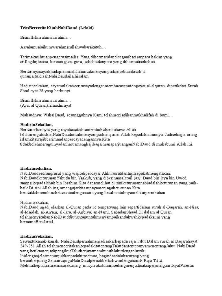Teks Bercerita Kisah Nabi Daud