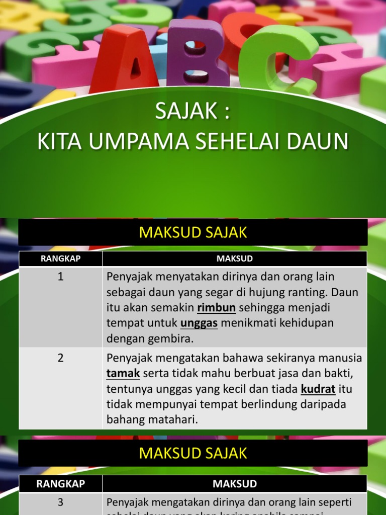 Sajak Kita Umpama Sehelai Daun Tingkatan 1
