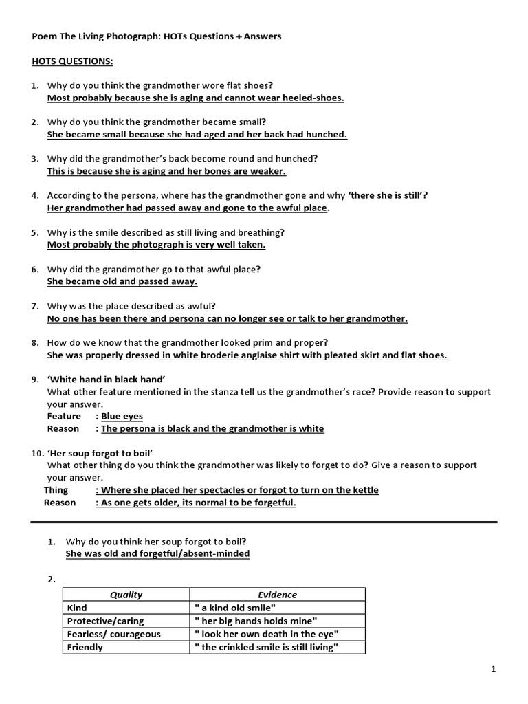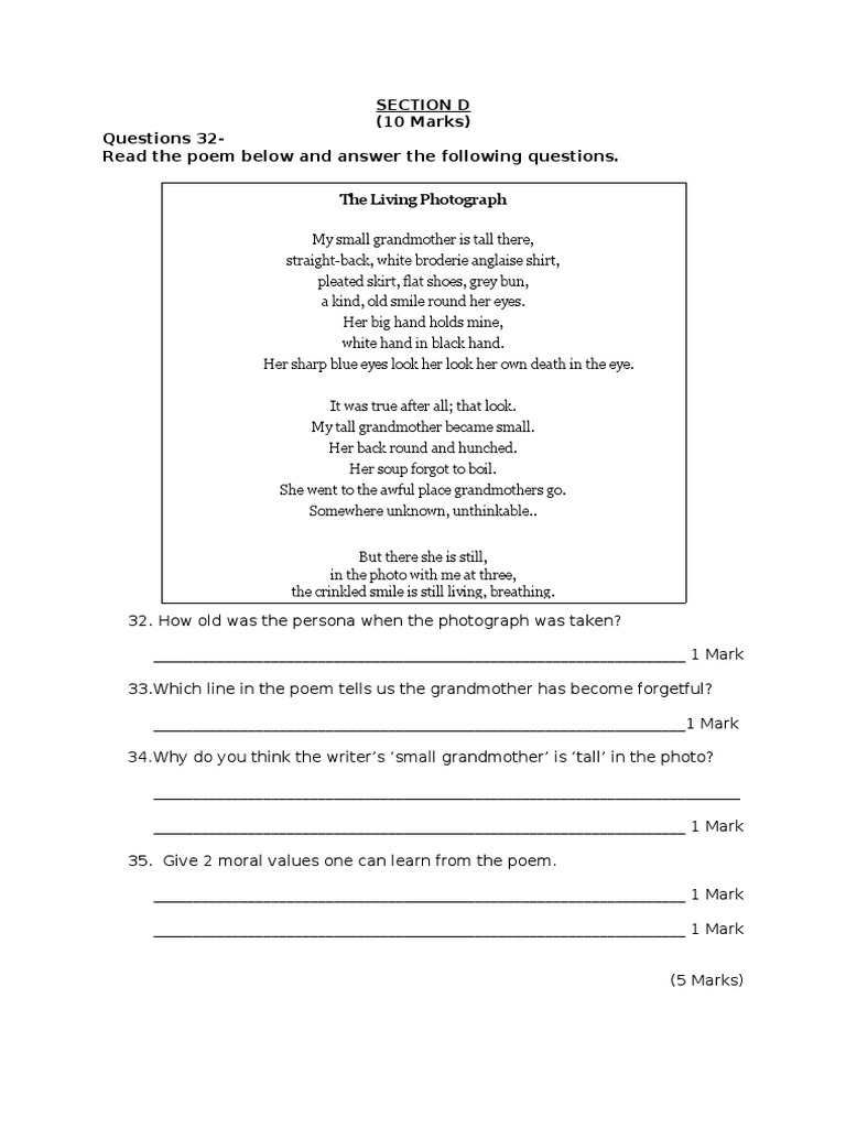 The Living Photograph Poem Form 4 Questions And Answers