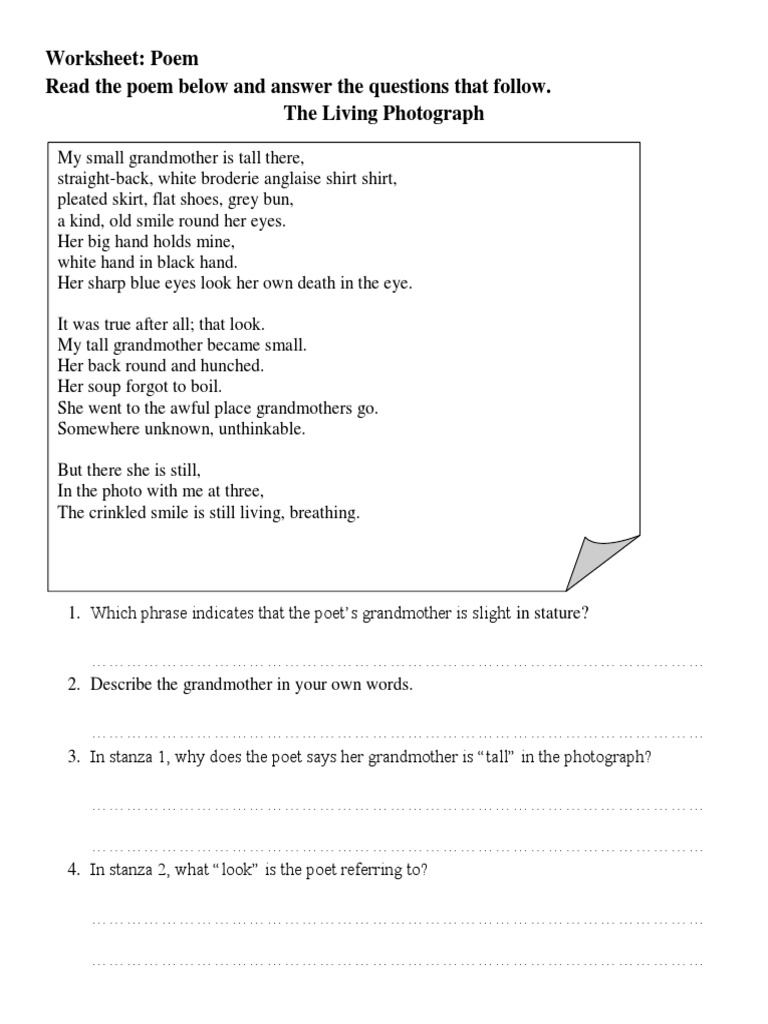 Poem The Living Photograph Worksheet Pdf