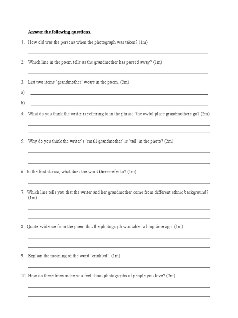 Poem The Living Photograph Worksheet Pdf