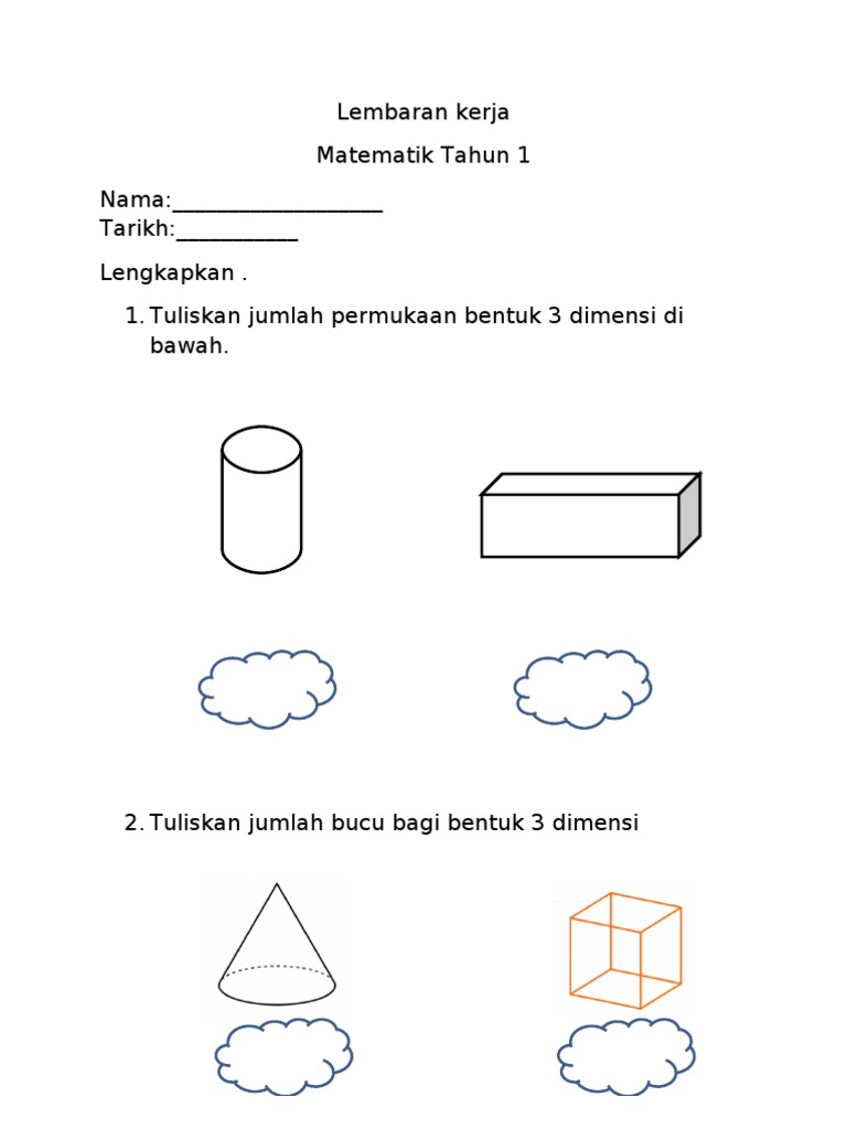 Bentuk 3d Tahun 1 Lembaran Kerja