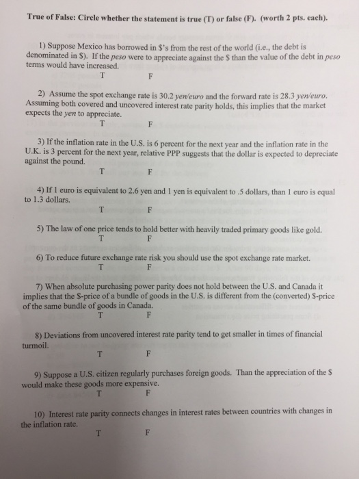 Solved True Or False No Need To Explain Just Write True Chegg Com