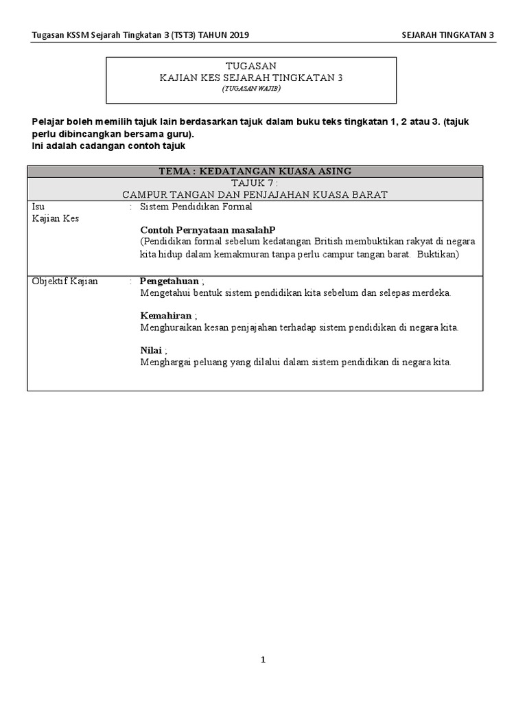 Tugasan Kajian Kes Sejarah Tingkatan 3 Pdf
