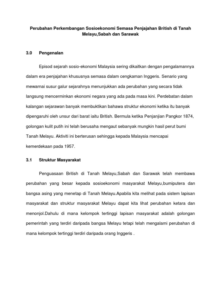 Perubahan Perkembangan Sosioekonomi Semasa Penjajahan British Di Tanah Melayu