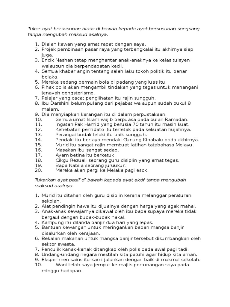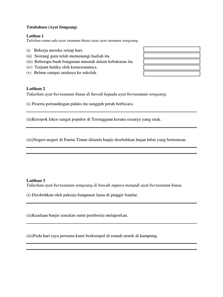 Latihan Tatabahasa Menukar Ayat Bersusunan Biasa Kepada Ayat Bersusunan Songsang Latihan Tatabahasa Menukar Ayat Bersusunan Biasa Kepada Ayat Bersusunan Songsang