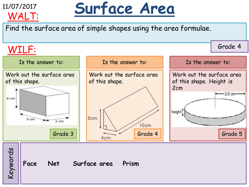 Maths Ks3 Surface Area And Volume Of Prisms Teaching Resources