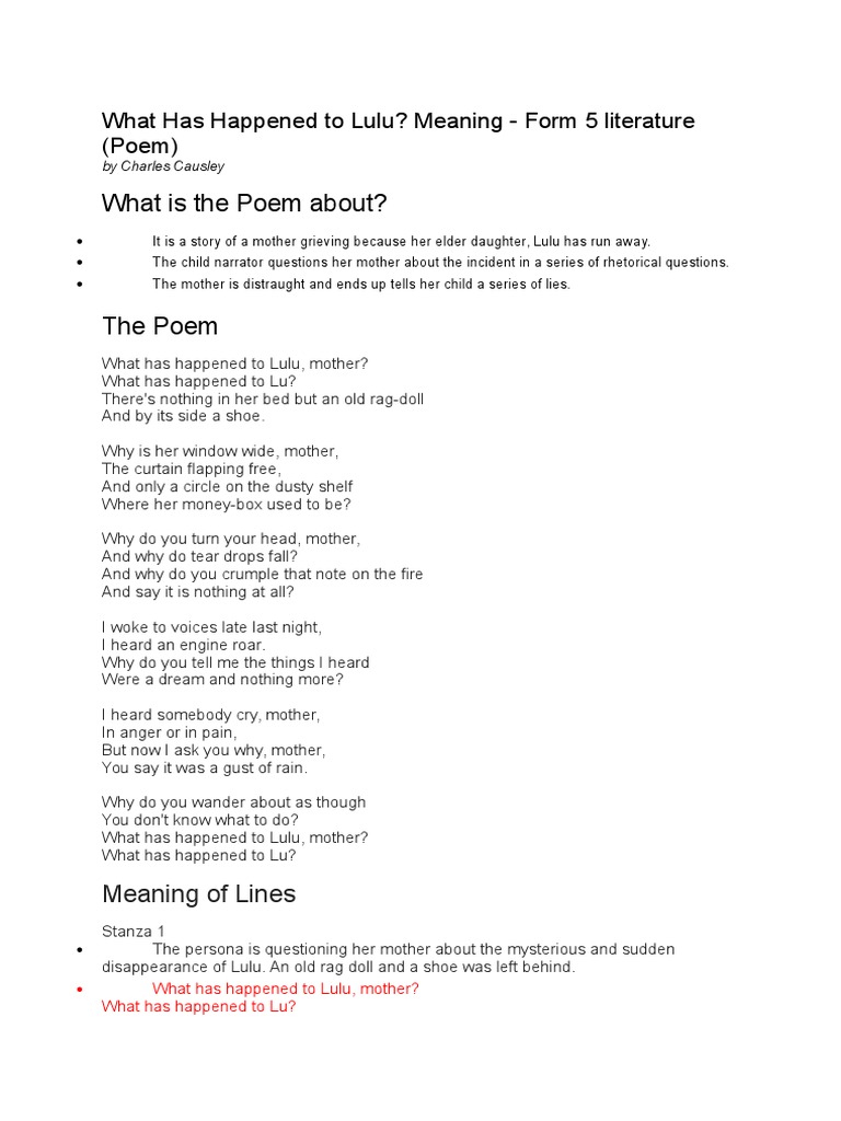 What Has Happened To Lulu By Charles Causley From Miss Natra Pages 1 4 Text Version Anyflip