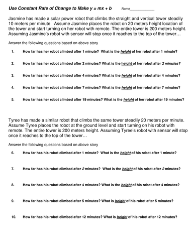 Real Life Examples Linear Equation Y Mx B Teaching Resources